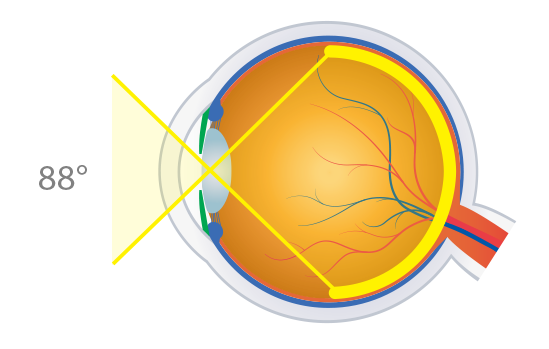 - Stark vergrößerte Fundusvisualisierung bis zum Äquator