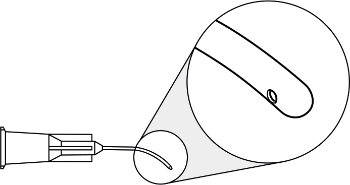 Die Spitze dieser Kanüle ist speziell für die Kortex Entfernung geformt.