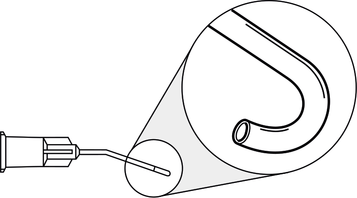 Die Spitze dieser Kanüle ist speziell für die Kortex Entfernung geformt.