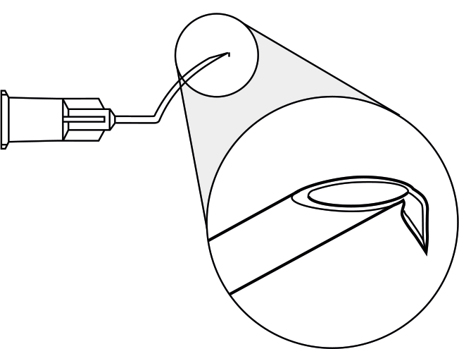 Zystotom mit scharfer Spitze zum Erstellen einer Öffnung in der vorderen Kapsel, zur Kerndislozierng oder andere intraokulare Anwendungen. Spitze ist um 90° abgewinkelt, dann um 90° gedreht. Die spezielle Spitze ermöglicht die Kontrolle des Flaps während der kontinuierlichen kurvenförmigen Kapsulotomie.