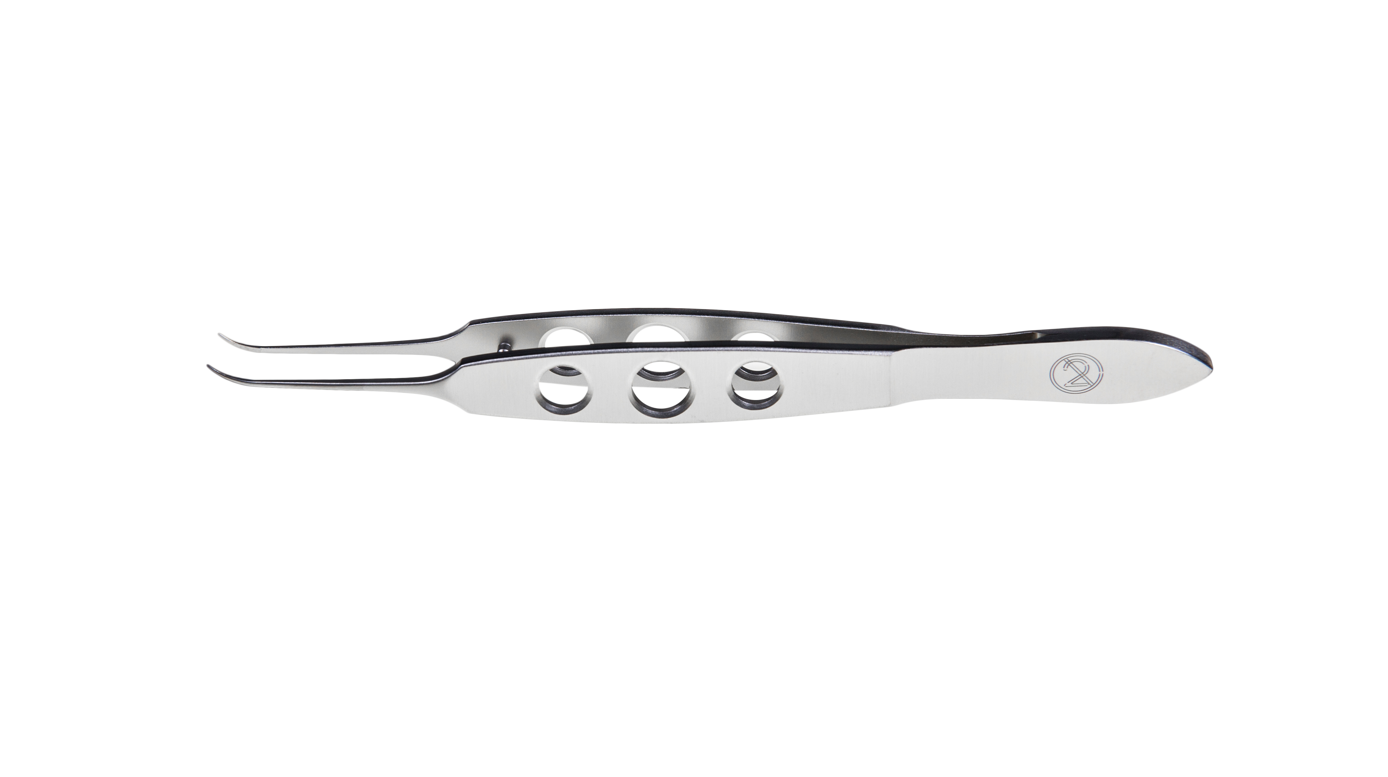 - 17503 ONE STEEL - Kapsulorhexispinzette für 1,8 mm Inzisionen, gebogen, 45° spitz zulaufende Tips, flacher Metallgriff