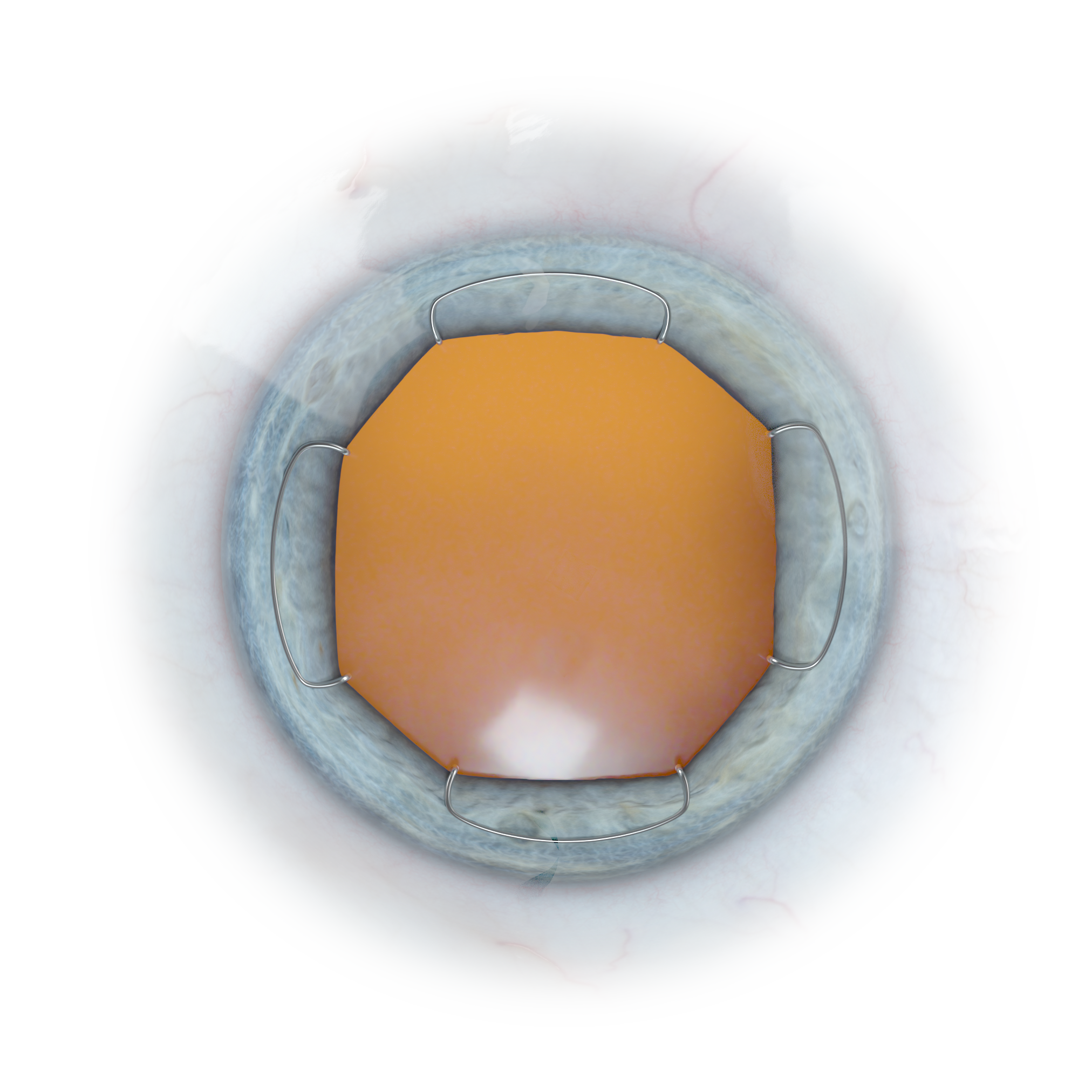 Das Xpand NT Irisspekulum besteht aus einer innovativen Titan-Nickel-Legierung, die auch nach längerer Deformation in ihre Ursprungsform zurückkehrt. Es ist biokompatibel und somit auch zum längeren Verbleib im Auge geeignet. Das Schließen der Form durch die Technik des Laserschweißens schont das Gewebe. Für einfaches Einführen und Manipulieren der Instrumente in das Auge steht das Design mit 4 Taschen. Durch die 8-Punkt-Irisfixierung wird die Belastung der Iris bei gleichzeitiger Maximierung der Pupillengröße minimiert.